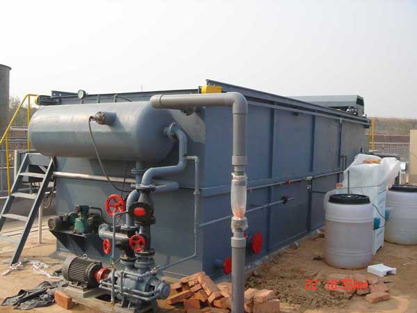 气浮浓缩工艺是固液分离或液液分离的一种技术,它是通过某种方法产生大量的微气泡,使其与废水中密度接近于水的固体、液体或液体污染物微粒黏附,形成密度小于水的气浮体,在浮力的作用下,上浮至水面形成浮渣,由刮浮渣机收集处置。